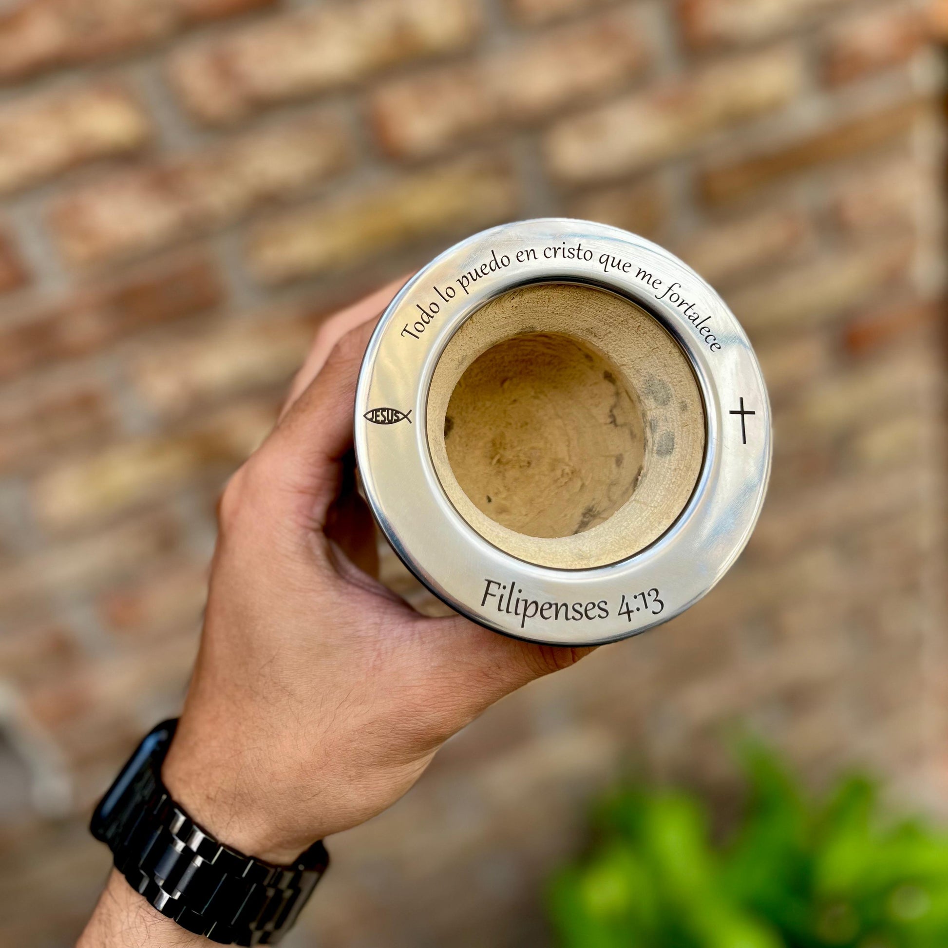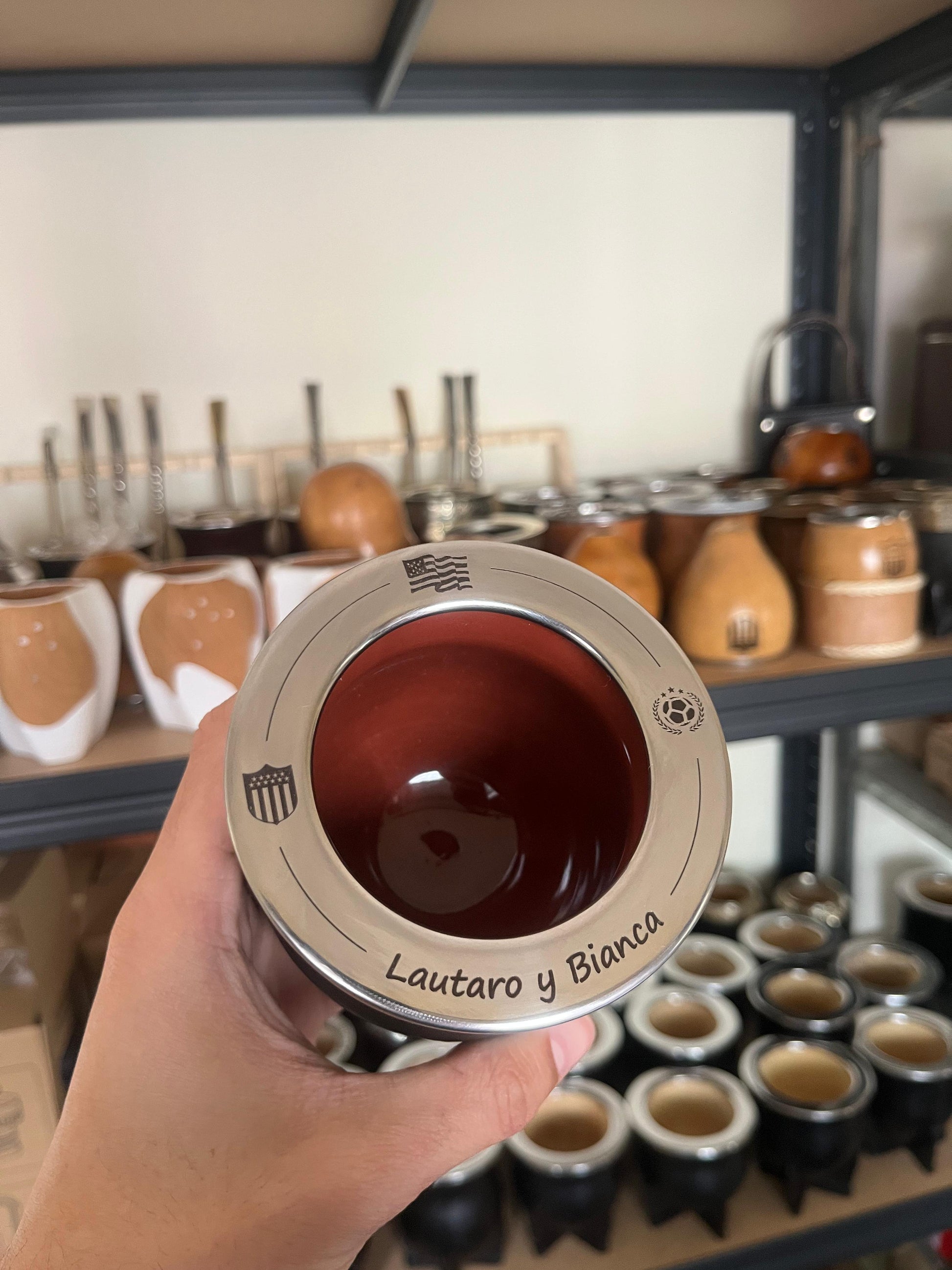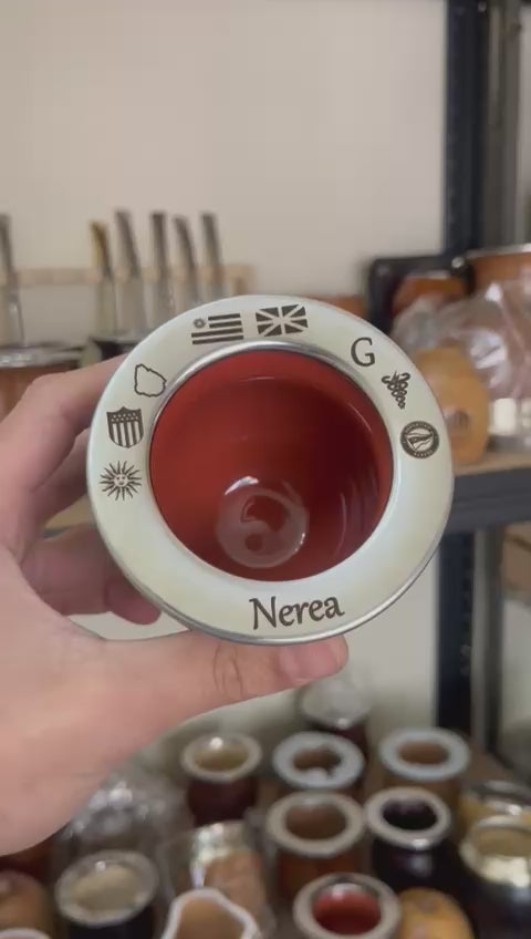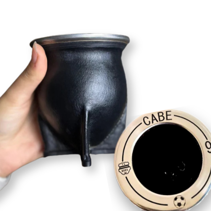 Mate Camionero de calabaza o cerámica forrado en cuero con boquilla de acero inoxidable.