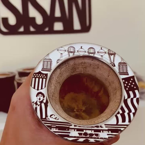 Mate camionero forrado en cuero. Diseño premium virola completa de Peñarol🟡⚫ - calabaza o cerámica.